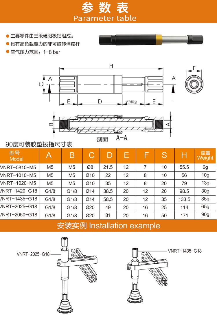 VNRT類別:伸縮桿系列